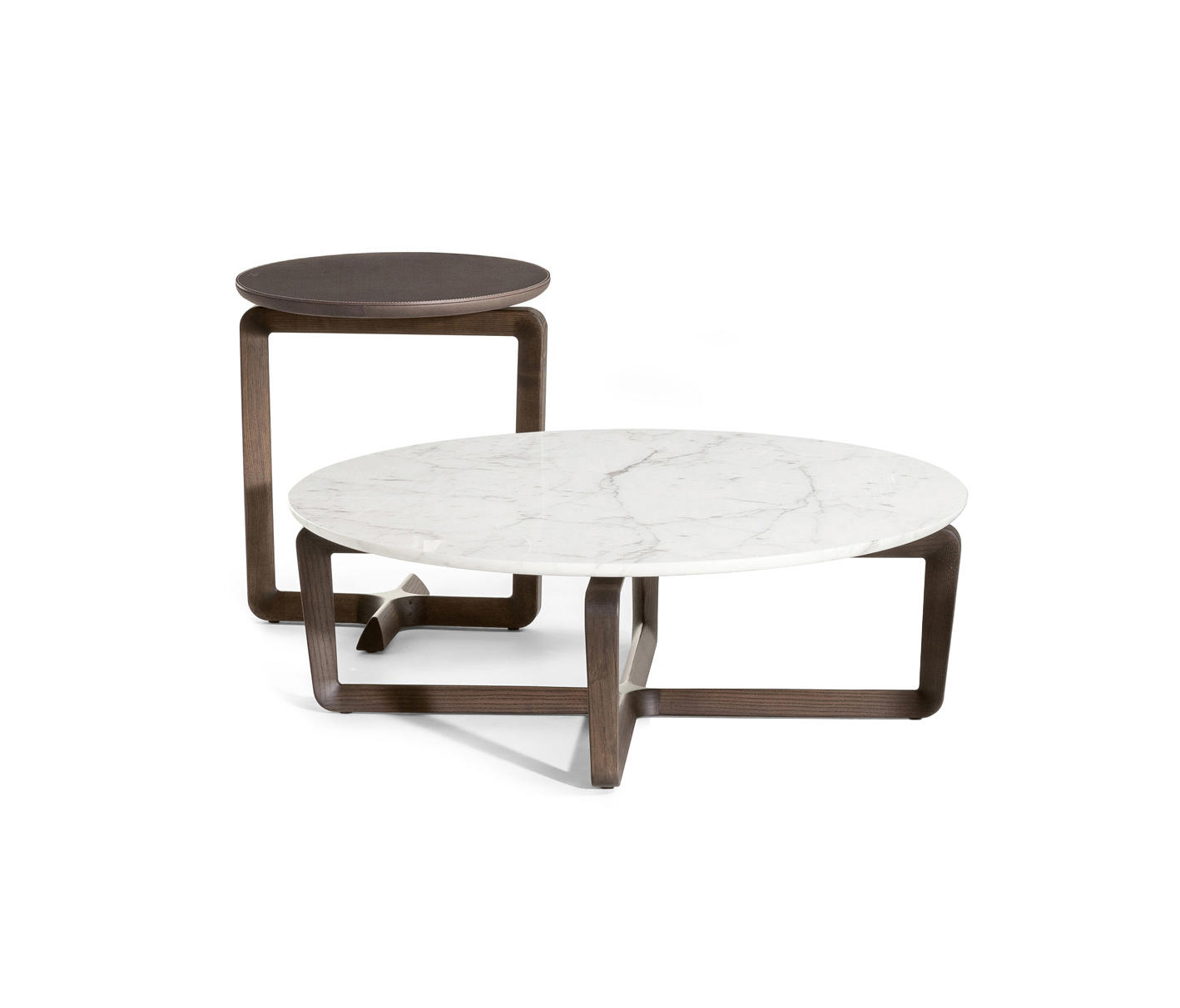 I tavolini Fidelio, disegnati da Roberto Lazzeroni, sono noti per la loro versatilità e la facilità con cui i mobili possono essere abbinati a qualsiasi interno. La base dei tavolini è realizzata in massello di frassino, che può essere tinto moka o wengè. Per il piano è possibile scegliere tra diversi materiali esclusivi come il Cuoio Saddle Extra di Poltrona Frau, oltre al marmo Emperador o Calacatta.