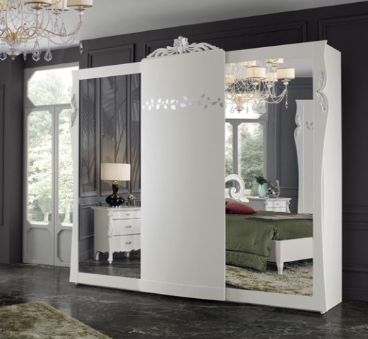 Armadio in legno a 3 ante scorrevoli. Opzione specchio disponibile. Le finiture possono essere selezionate dal catalogo campionario di fabbrica.