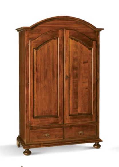 Armadio con 2 ante battenti e 2 cassetti in pioppo. Le finiture possono essere scelte dal campionario di fabbrica.