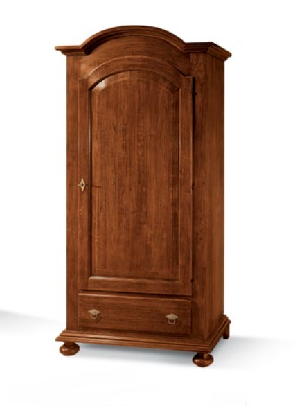 Armadio con 1 anta battente e 1 cassetto. Le finiture possono essere scelte dal campionario di fabbrica.