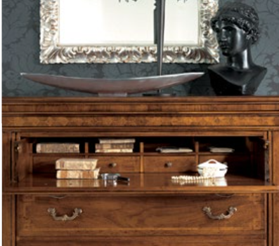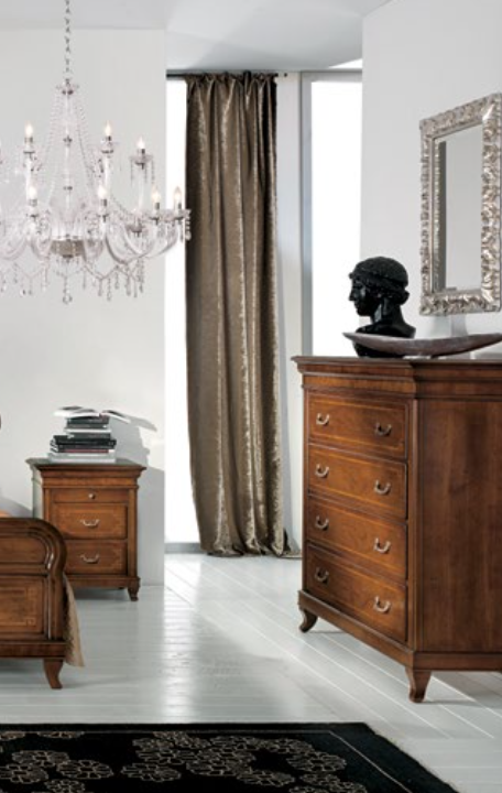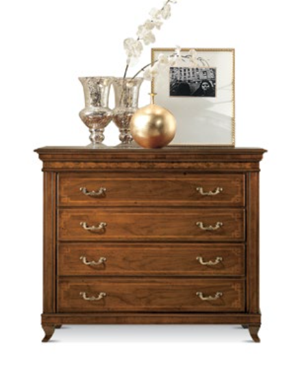 Cassettiera intarsiata a 4 cassetti. Disponibile come cassettiera con 3 cassetti e anta battente 453/R-VH. Le finiture possono essere scelte dal campionario di fabbrica.
