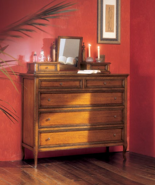 Cassettiera con 5 cassetti. Inoltre è possibile ordinare un alzatina con specchio. 599/A-VH (95x24x44). Le finiture possono essere scelte dal campionario di fabbrica.