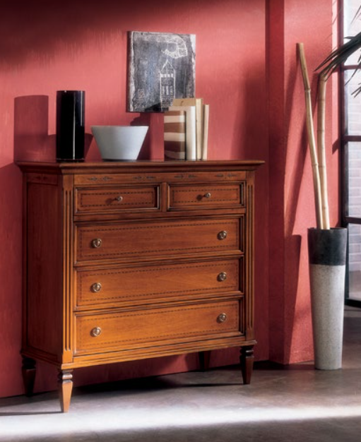 Cassettiera con 5 cassetti. Le finiture possono essere scelte dal campionario di fabbrica.