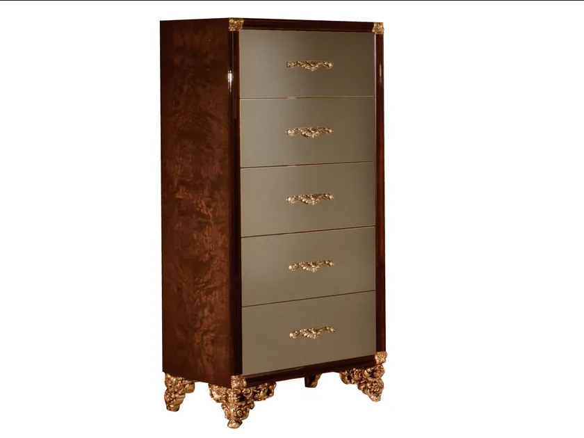 Il tallboy GRAND ROYAL presenta meccanismi avanzati per i cassetti che garantiscono un funzionamento silenzioso e senza intoppi. L'uso di hardware di alta qualità consente un'apertura e chiusura facile, migliorando la comodità per l'utente. Inoltre, la struttura è progettata per stabilità e longevità, rendendola una scelta affidabile per qualsiasi casa.