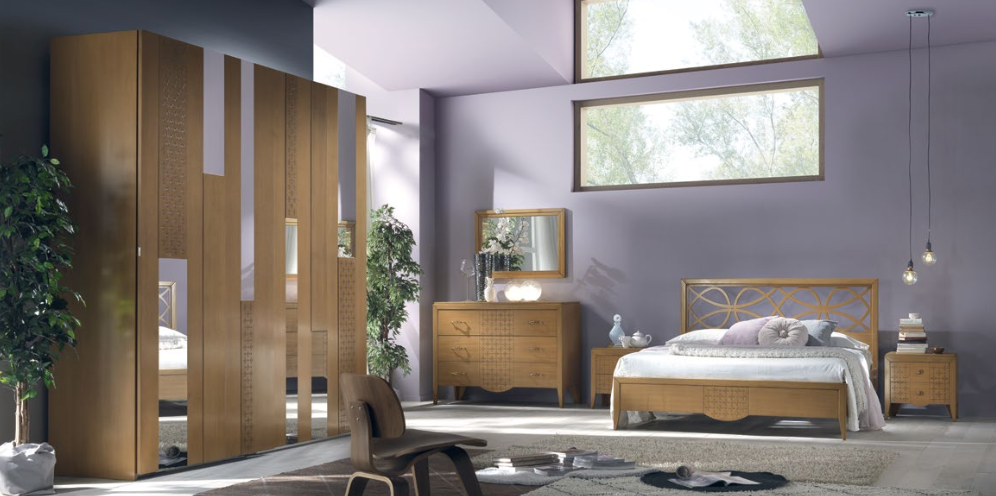 Comodino in TANGANIKA 2 cassetti con intagli. Le finiture possono essere selezionate dal catalogo campionario di fabbrica.