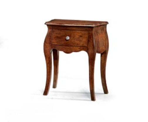 Comodino figurato con 1 cassetto. Le finiture possono essere scelte dal campionario di fabbrica.