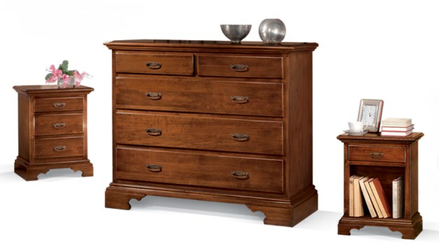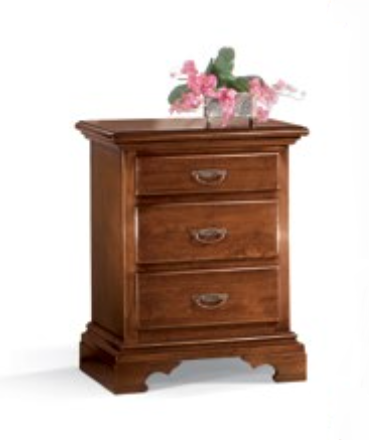 Comodino con 3 cassetti. Le finiture possono essere scelte dal campionario di fabbrica.