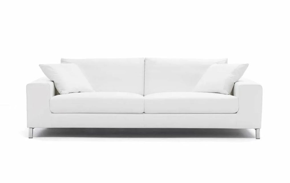 Divano BIBA salotti Avatar. Struttura in legno e multistrato, imbottita in poliuretano a densità differenziate e rivestita con resina adesiva spessore 10 mm. La struttura dei cuscini del sedile è in compensato. Cuscini seduta in poliuretano con densità minima 30 HR, con inserti centrali a molle, il tutto rivestito con falda di Dacron. I cuscini dello schienale sono in piuma naturale depolverata lavata e sterilizzata 50% - 50% poliuretano, a camere divise orizzontalmente, completamente rivestiti in tessuto di cotone 100%. I cuscini in piuma naturale al 100% vengono lavati, spolverati e sterilizzati. Dimensioni cuscino 50 x 50 cm.