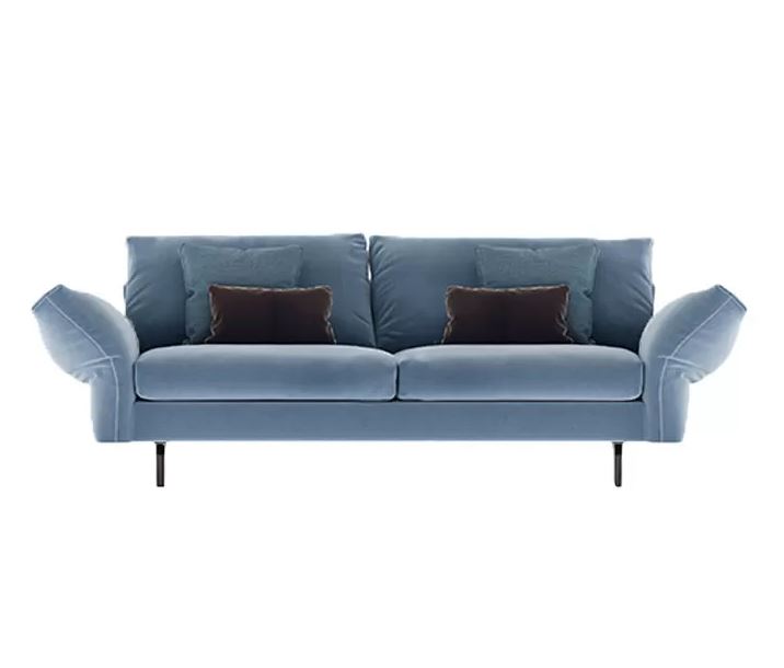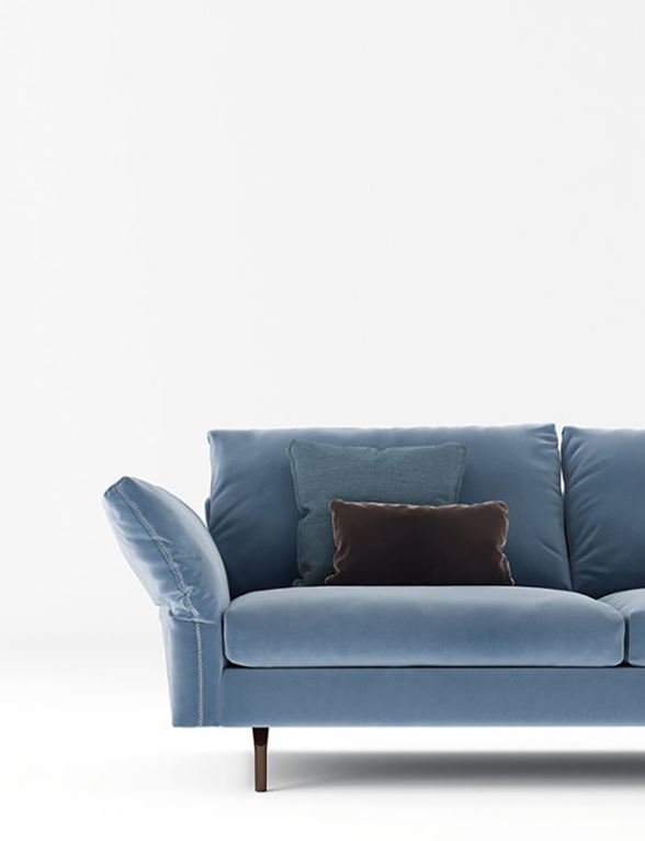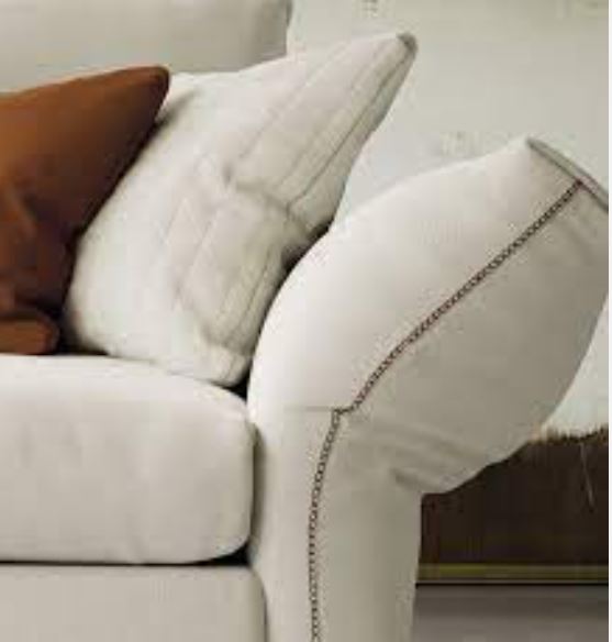 Divano BIBA salotti Bravo. Struttura in legno e multistrato, imbottita in poliuretano a densità differenziate e rivestita con resina adesiva spessore 10 mm. Il molleggio del sedile è realizzato con nastri elastici intrecciati ad alta densità. Cuscini di seduta in poliuretano con densità minima 30 HR, rivestiti con falda di Dacron. Cuscini schienale: imbottitura 50% (fibra poliestere siliconata cava) - memory foam 50%, a camere divise orizzontalmente, completamente rivestito con tessuto 100% cotone.