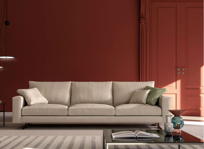 Divano SILVER BIBA salott con rivestimento morbido. Struttura in legno e multistrato, imbottita in poliuretano a densità differenziate e rivestita con resina adesiva spessore 10 mm. Il molleggio del sedile è realizzato con nastri elastici intrecciati ad alta densità. Cuscini seduta, schienali: 50% piuma naturale, imbottitura 50% (fibra poliestere cava siliconata) con uno strato di memory foam, completamente rivestito con uno strato di Dacron a base poliuretanica, completamente rivestito con tessuto di cotone 100%