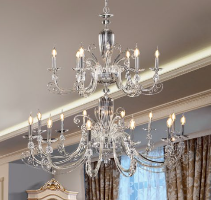 Lampadario Cleopatra 12+6 lampade su 2 livelli. Disponibile in oro.