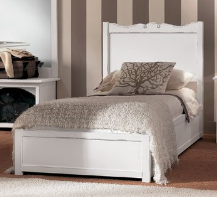 Letto singolo con testiera in legno. Le finiture possono essere scelte dal campionario di fabbrica.