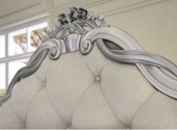 Letto matrimoniale con testiera imbottita e intagliata (per rete 160x195). È disponibile l'opzione letto per rete 180x200. Le finiture possono essere scelte dal campionario di fabbrica.