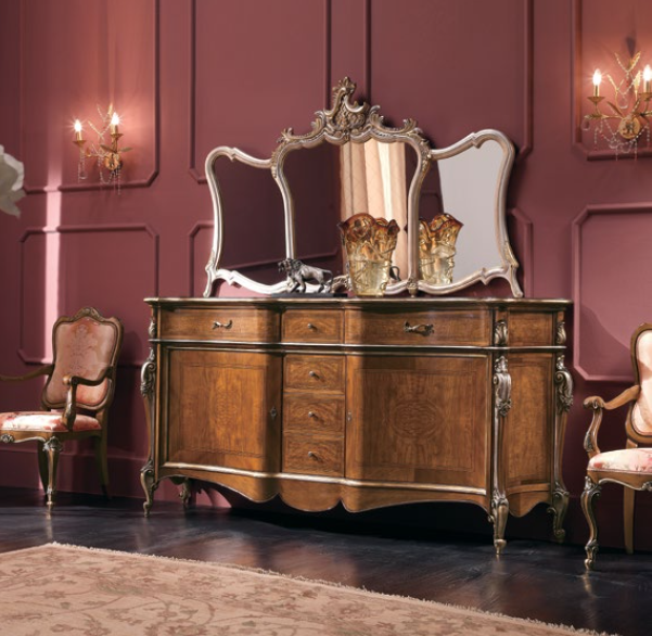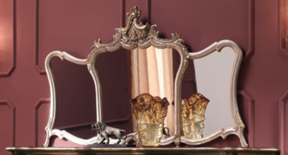 Specchio intagliato. Le finiture possono essere scelte dal campionario di fabbrica.