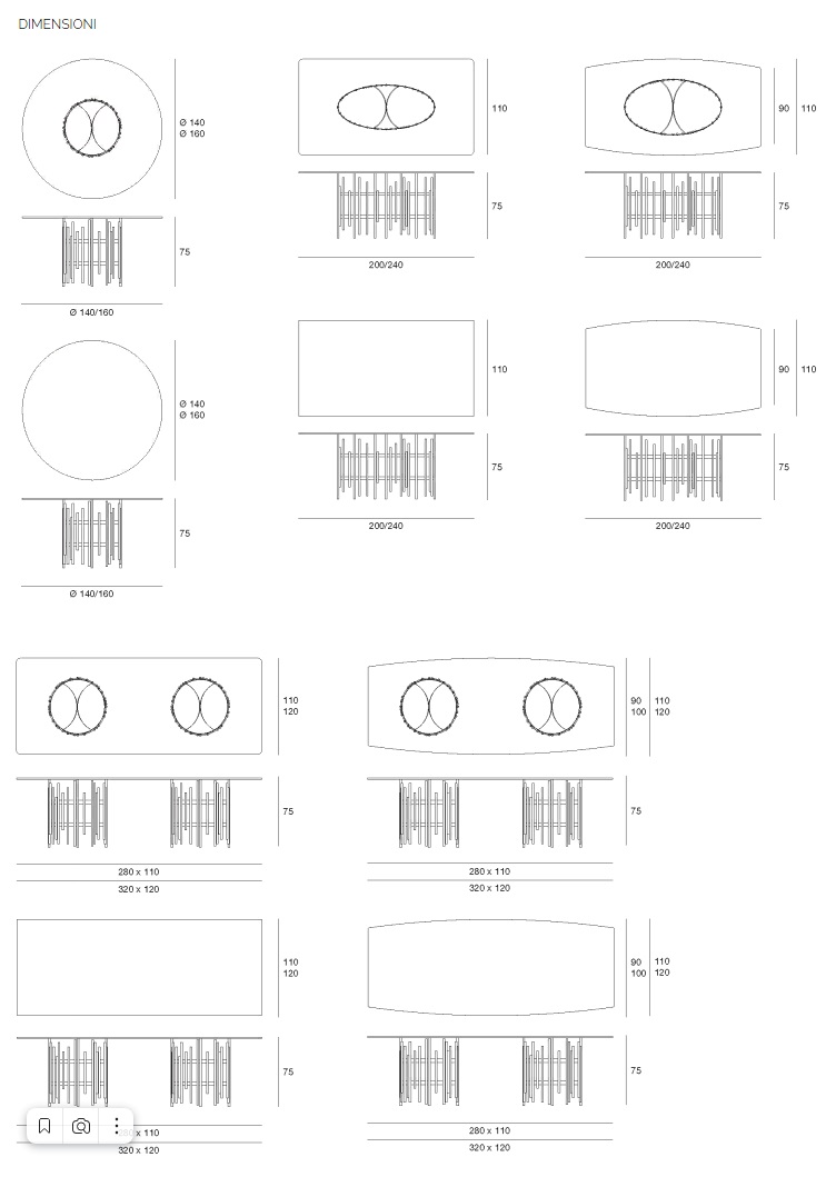 | Misura | Altezza (cm): 75; 75 Diametro (cm): 140; 160 |