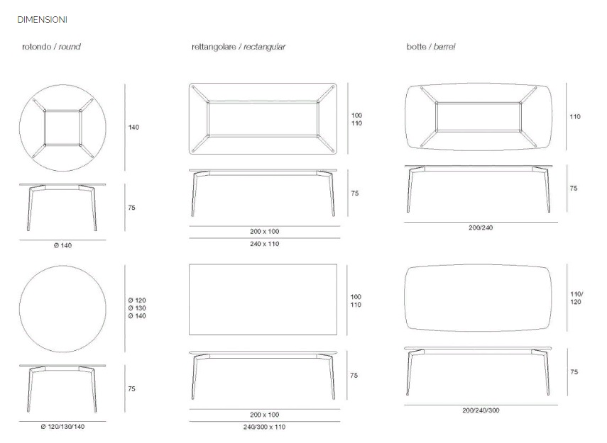 | Misura | Altezza (cm): 75; 75; 75 Diametro (cm): 120; 130; 140 |