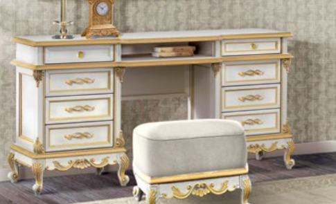 Toilette intagliata con 8 cassetti e vano. Le finiture possono essere scelte dal campionario di fabbrica.