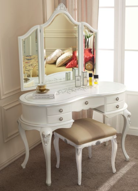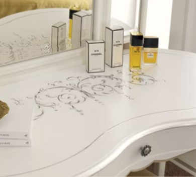 Toilette figurata con intagli e 5 cassetti. Inoltre è possibile ordinare un alzatina con specchio 604/A-VH (101x8x93). Le finiture possono essere scelte dal campionario di fabbrica.