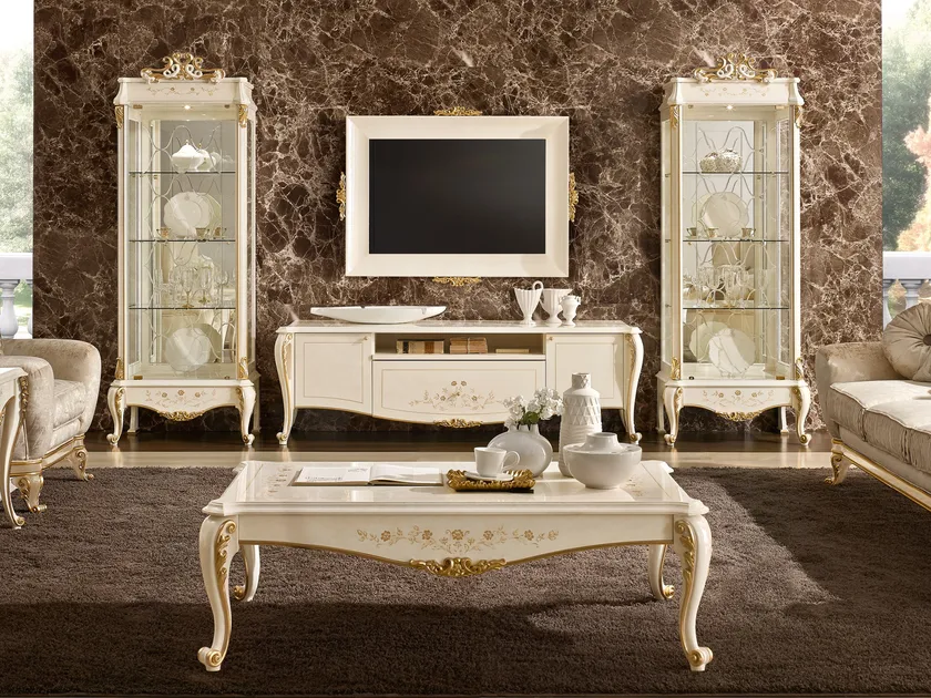 La vetrina RICASOLI incarna uno stile classico con influenze contemporanee, creando un'appeal visivo unico. Il suo design incorpora elementi tradizionali, come incisioni intricate e dettagli in legno massello, pur abbracciando anche estetiche moderne attraverso l'uso di vetro e finiture a vernice. Questa combinazione produce un pezzo che non solo funge da mobile funzionale ma anche da opera d'arte che arricchisce qualsiasi spazio.