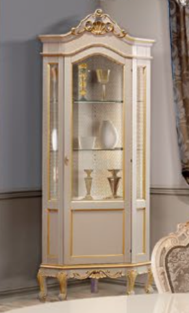 Vetrina angolare ad 1 anta. Le finiture possono essere scelte dal campionario di fabbrica.