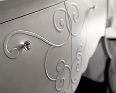 Vetrina su gambe con basamento 2 ante + grembiule con rilievo e 2 ante in vetro. È disponibile l'opzione senza scarico 621/SR-VH. Le finiture possono essere scelte dal campionario di fabbrica.